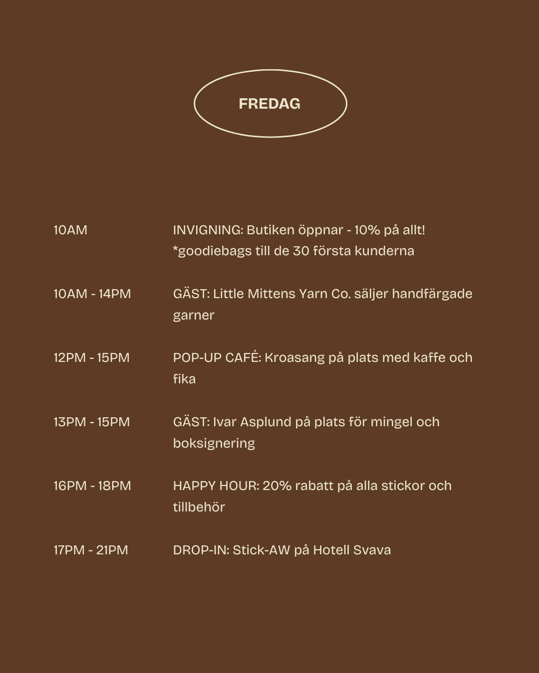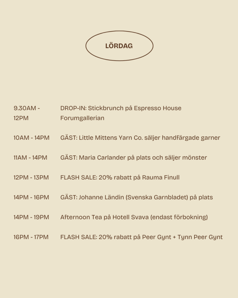 Fredag den 13 mars mellan 17.00-21.00 bjuder vi in till en mysig stick-AW på Hotel Svava. Dryck finns att köpa på plats för den som önskar och vi håller aktiviteter som quiz och garnbingo. Drop-in med begränsade platser – ingen förbokning behövs.