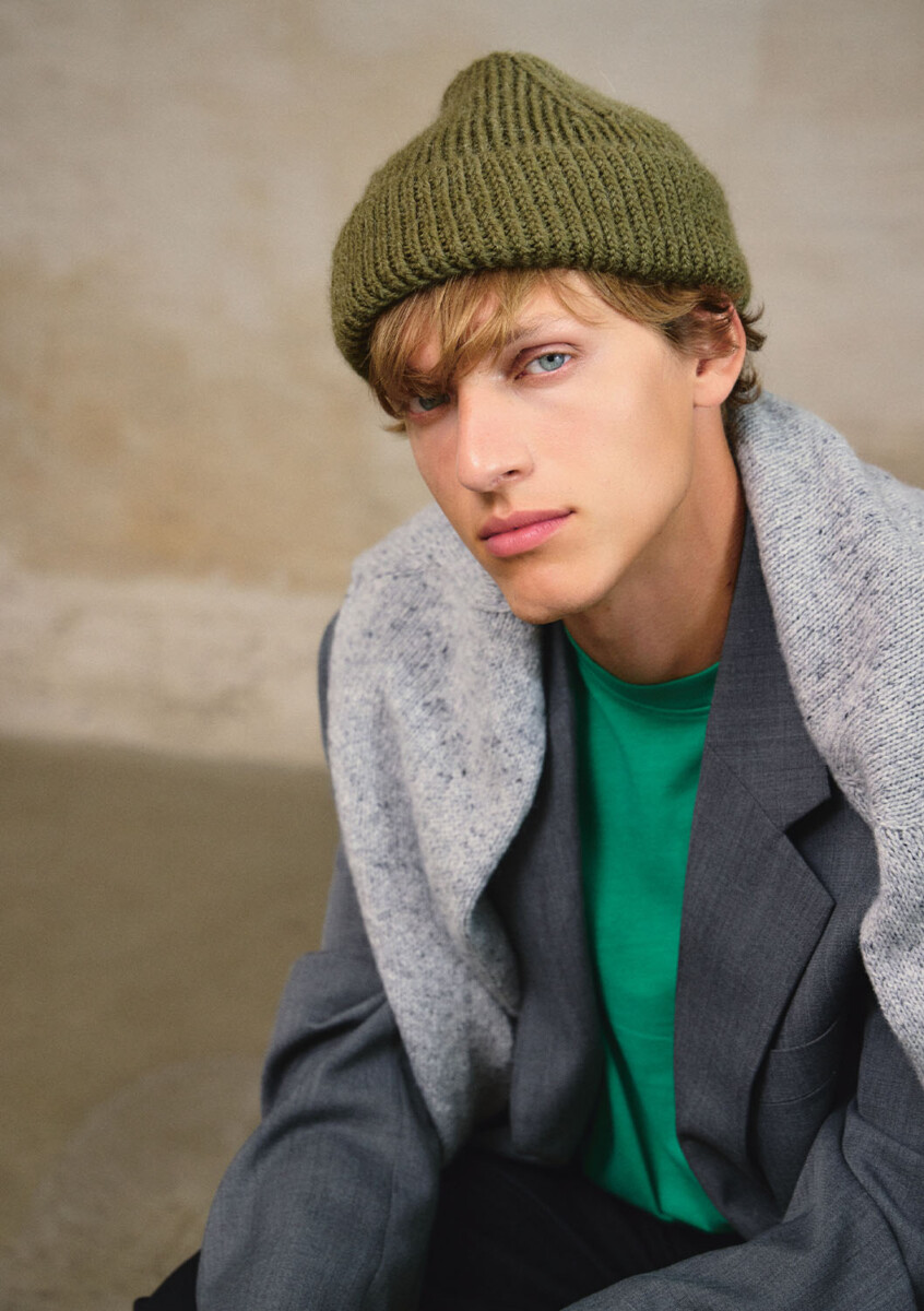 På bild stickad i Alpakka Ull 9873 Dark Olive och Alpakka Føljetråd 9873 Dark Olive. Syns även på bild i Alpakka Ull 5811 Artic Ice och Alpakka Føljetråd 5811 Artic Ice.