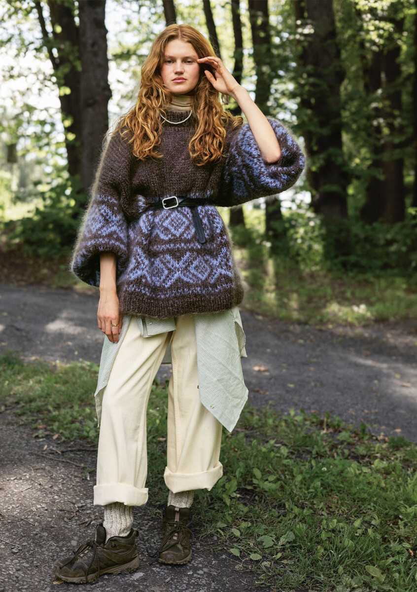 På bild stickad i 5505 Pale iris och 3880 Mörk Choklad.