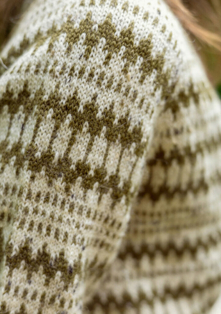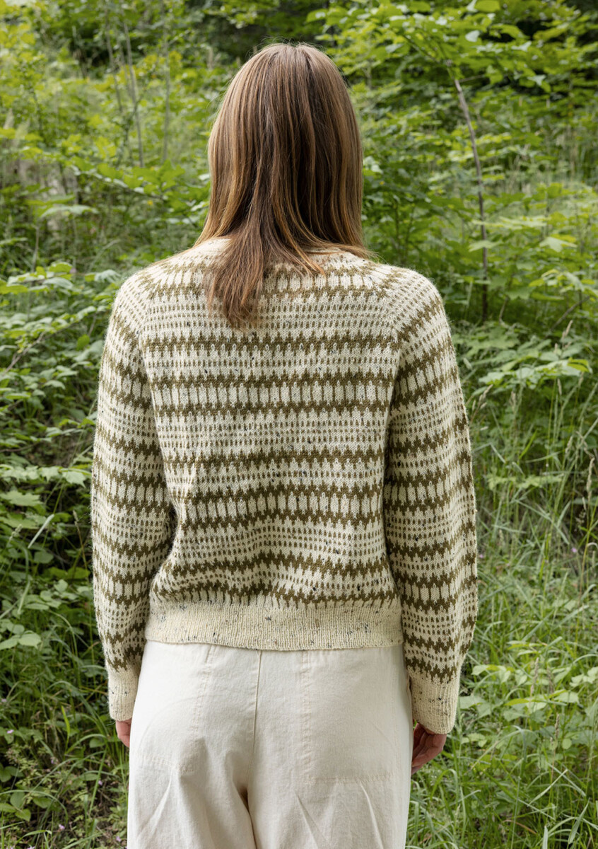 På bild stickad i 2523 Natur Tweed och 9873 Dark Olive.