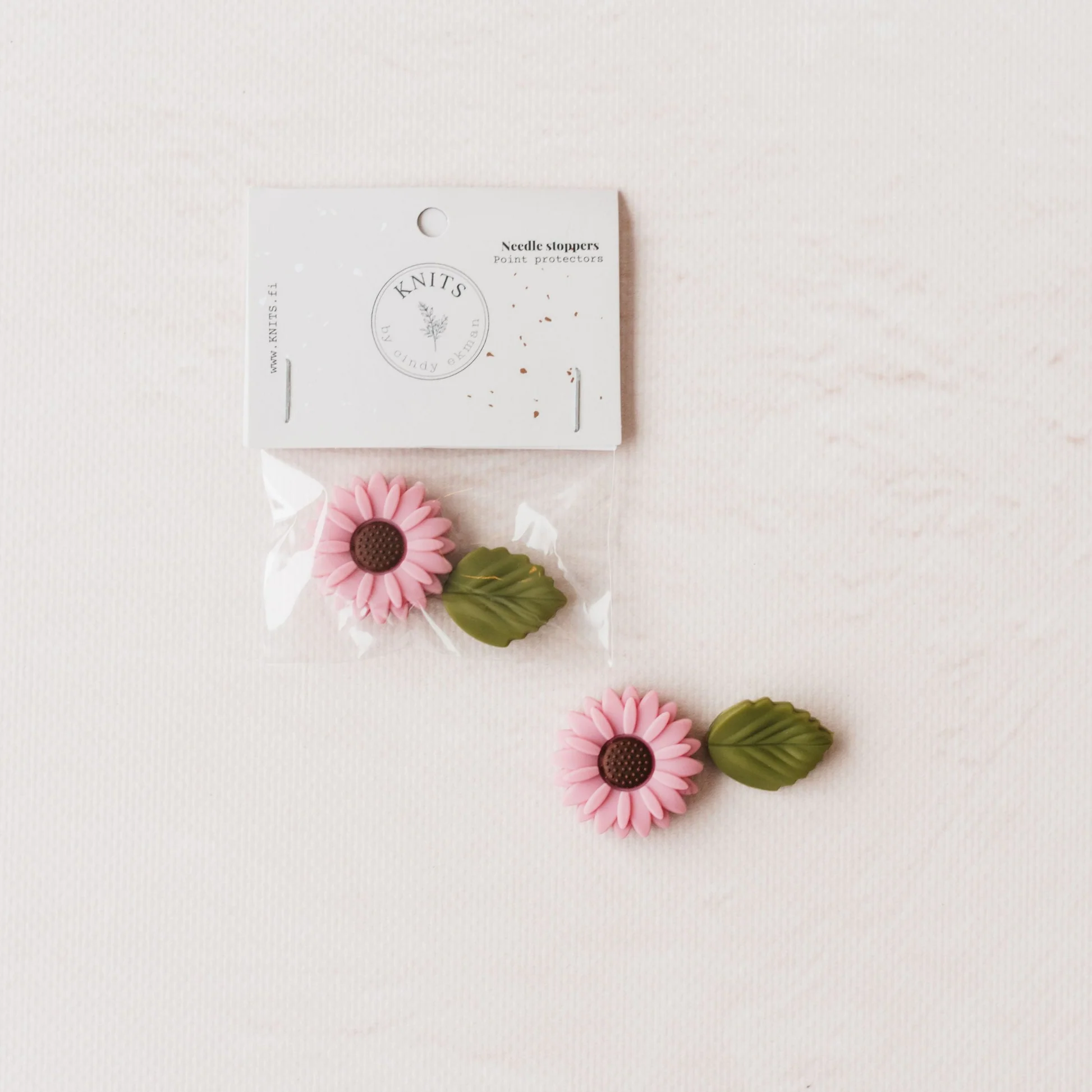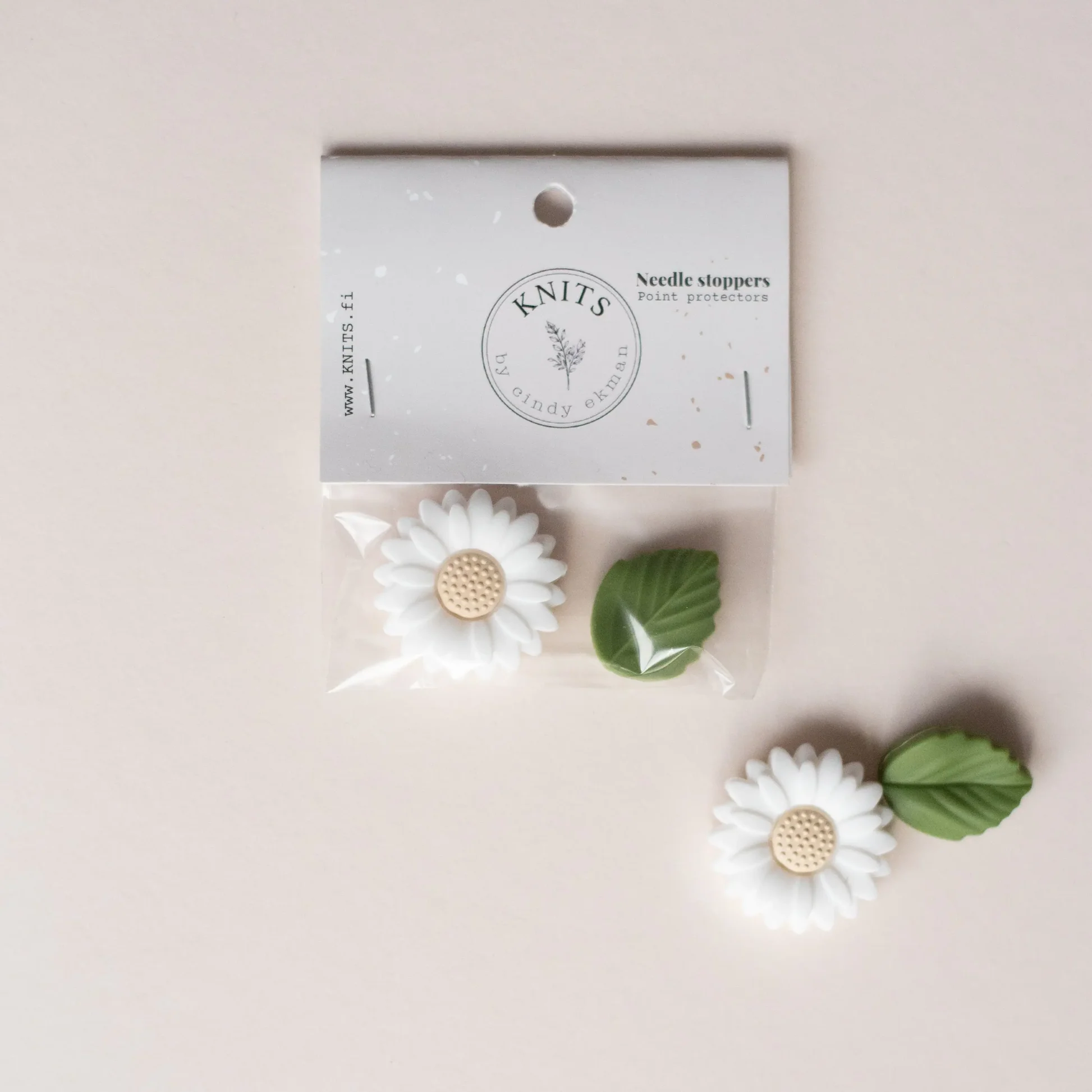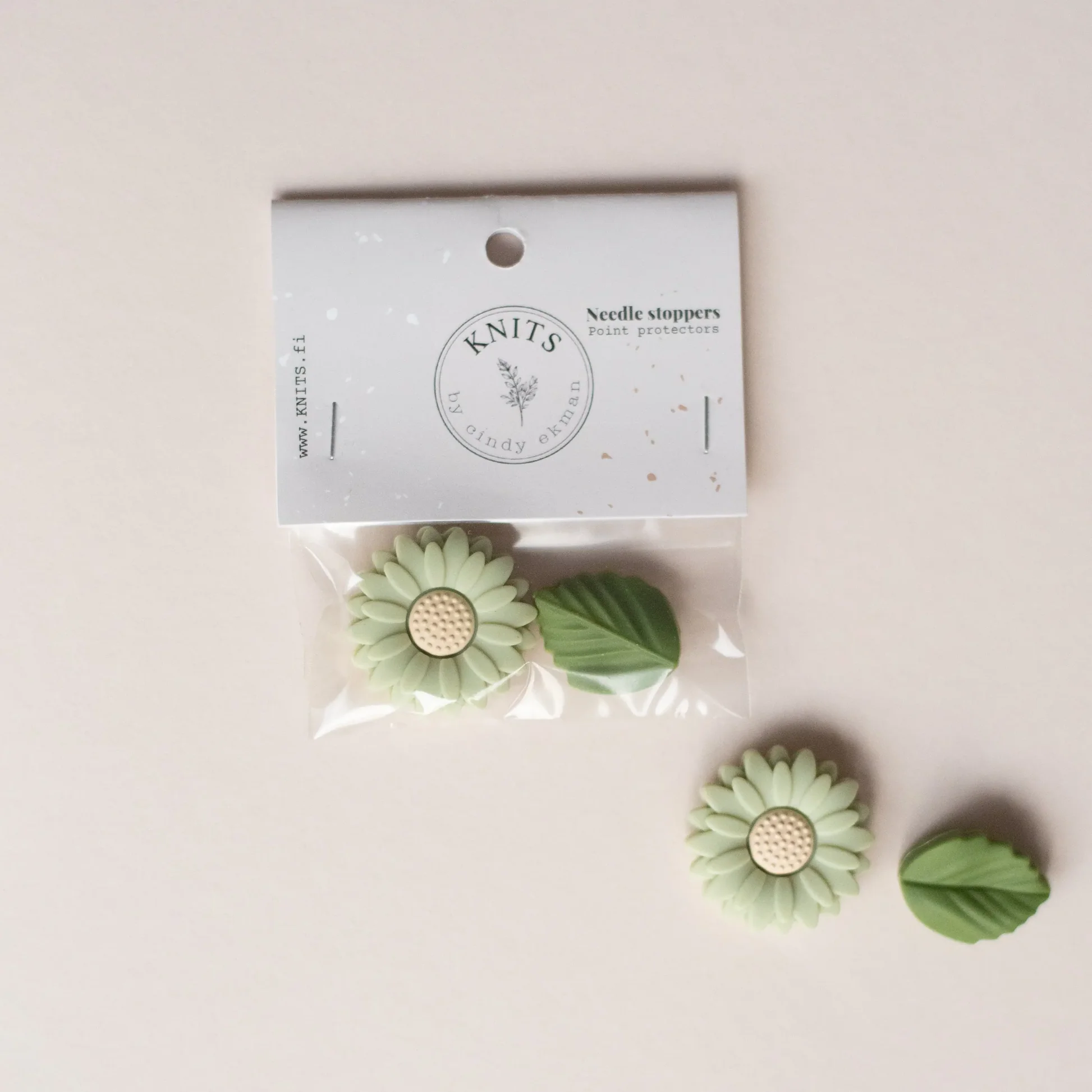 Denna underbara uppsättning av solros + blad fungerar från 2,5 mm stickor upp till 10 mm. De stannar på plats medan de lyser som solen.