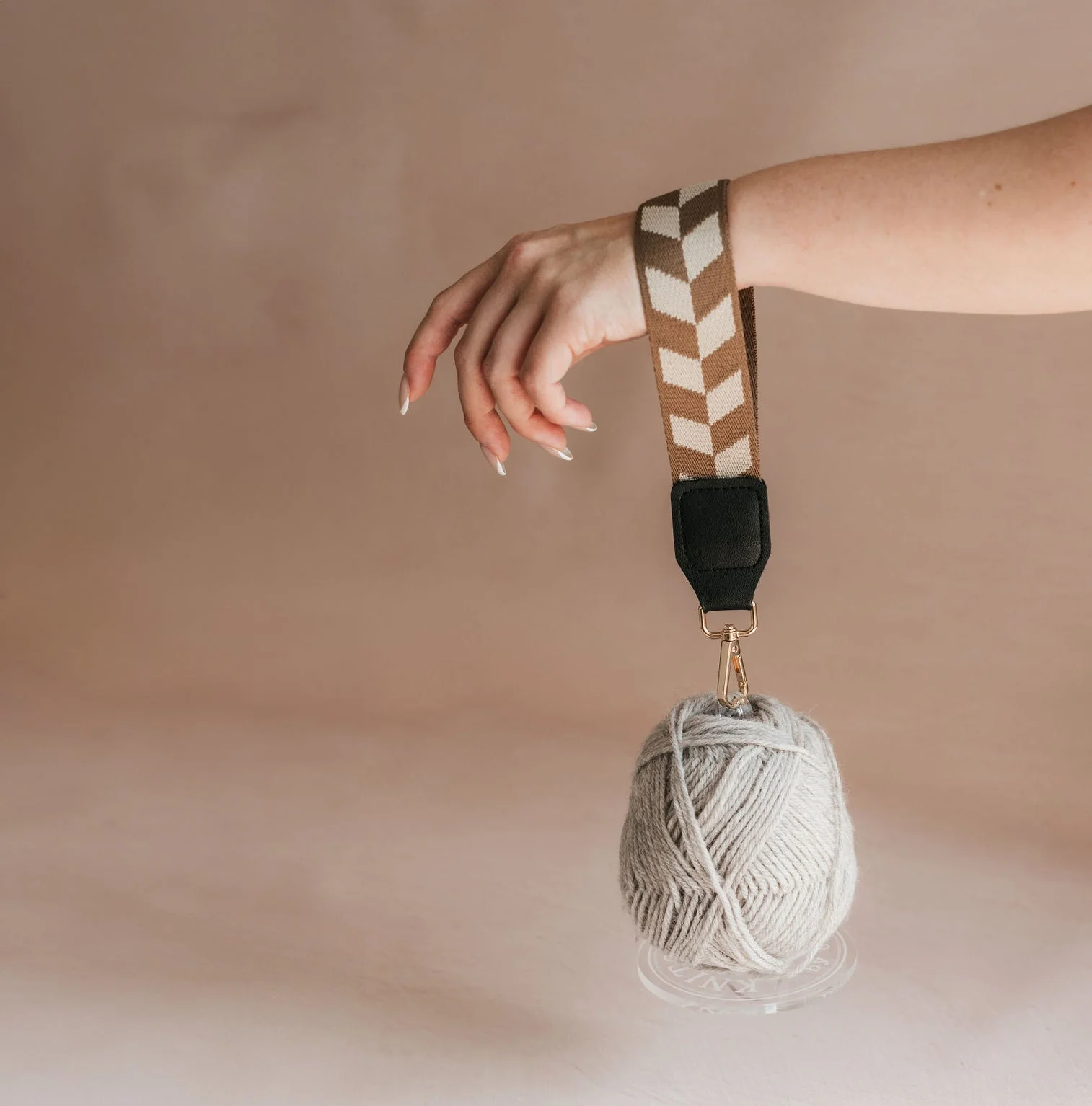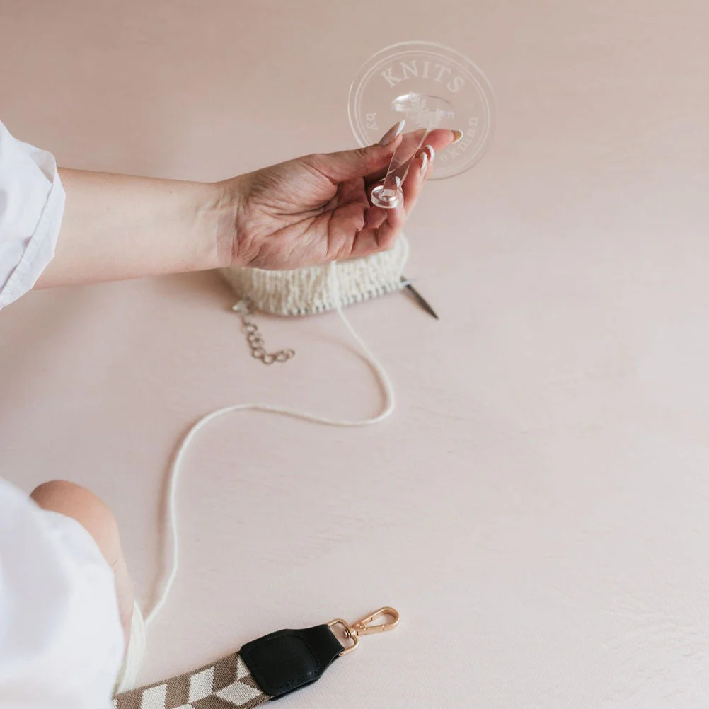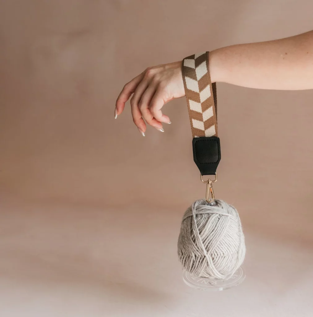 Häng den på handleden, på en krok i bilen, eller till och med på en trädgren. Du kommer aldrig behöva jaga en garnboll på marken igen efter att ha upplevt fördelarna med KNITS yarn buddy.