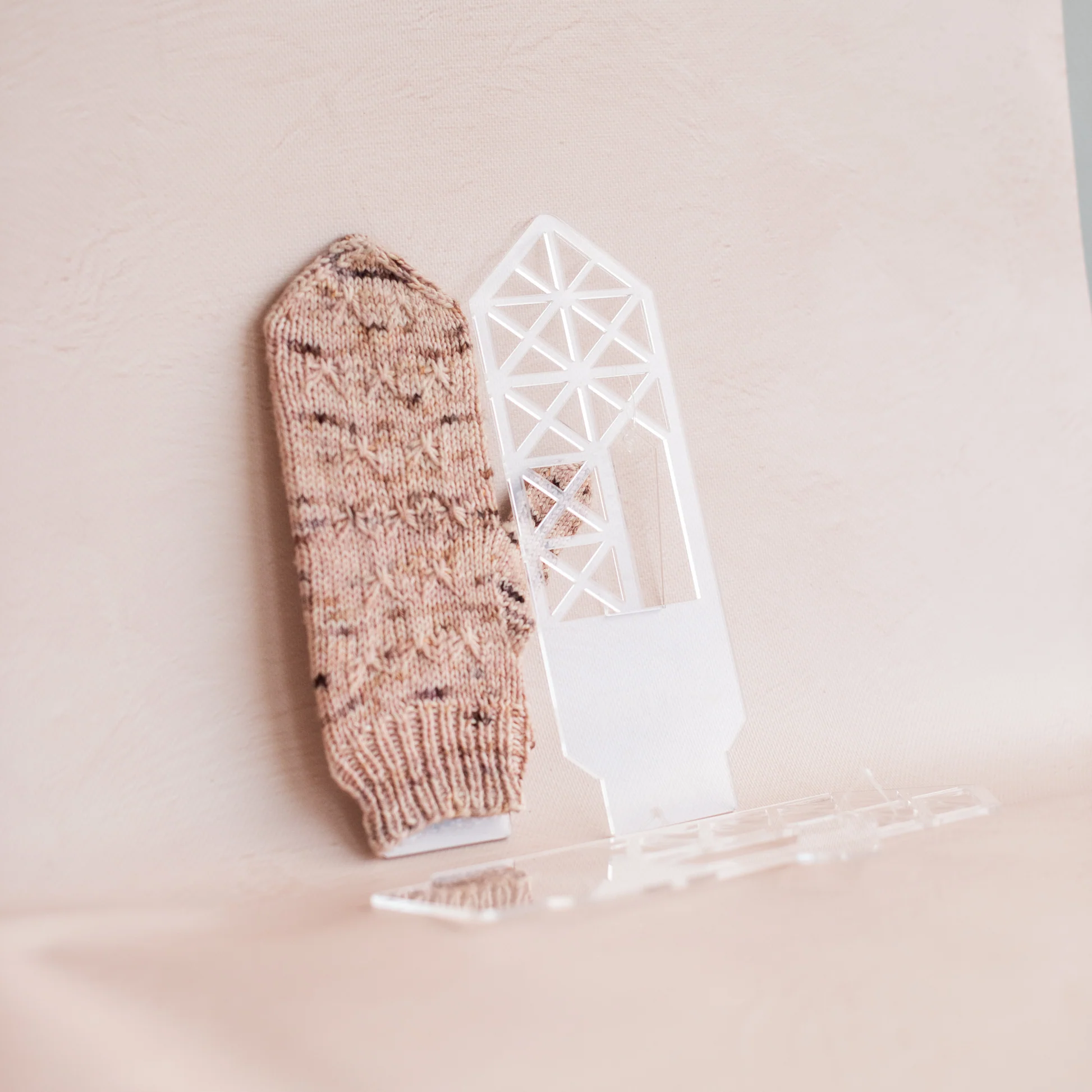 Knits Vantblockare används för stickade vantar för att hjälpa till att forma och storleksbestämma de färdiga vantarna under blockningsprocessen. Blockning är en teknik inom stickning där den färdiga biten formas och sätts i sina slutliga mått. Vantblockare är särskilt användbara för vantar eftersom de ger en strukturerad form som hjälper vantarna att torka i den önskade formen, vilket gör dem mer professionella och välpolerade.
