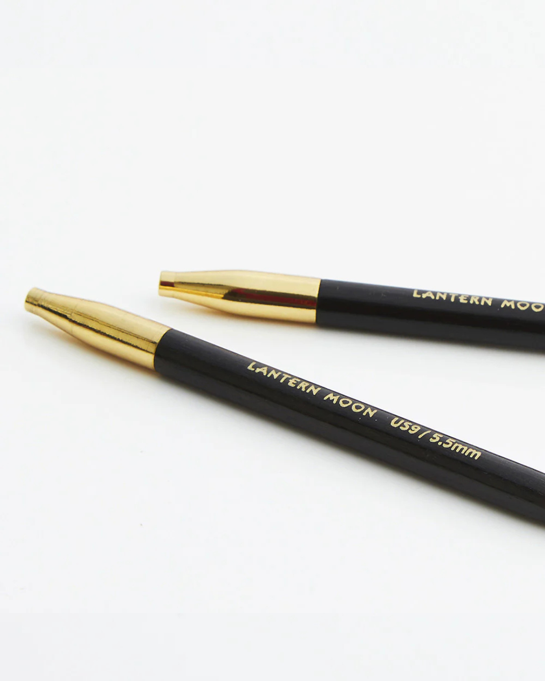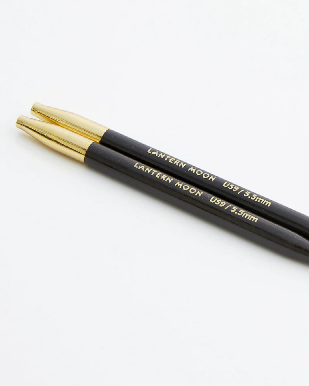 Lantern Moons utbytbara rundstickor är tillverkade av ebenholtsträ, ett av världens mest värdefulla material. Den silkeslena ytan på dessa lätta, utbytbara rundstickor och den 24K-guldpläterade mässingskopplingen garanterar en problemfri stickning utan att garnet fastnar. Den smidiga kabeln på de utbytbara rundstickorna vrider sig aldrig tack vare en svängbar koppling, och den ligger platt för enkel förvaring. De jämnt slipade och formade spetsarna fungerar utmärkt med alla typer av garn.