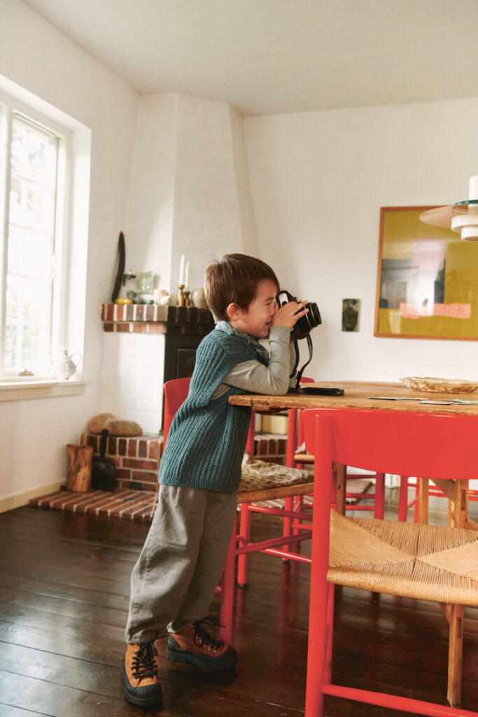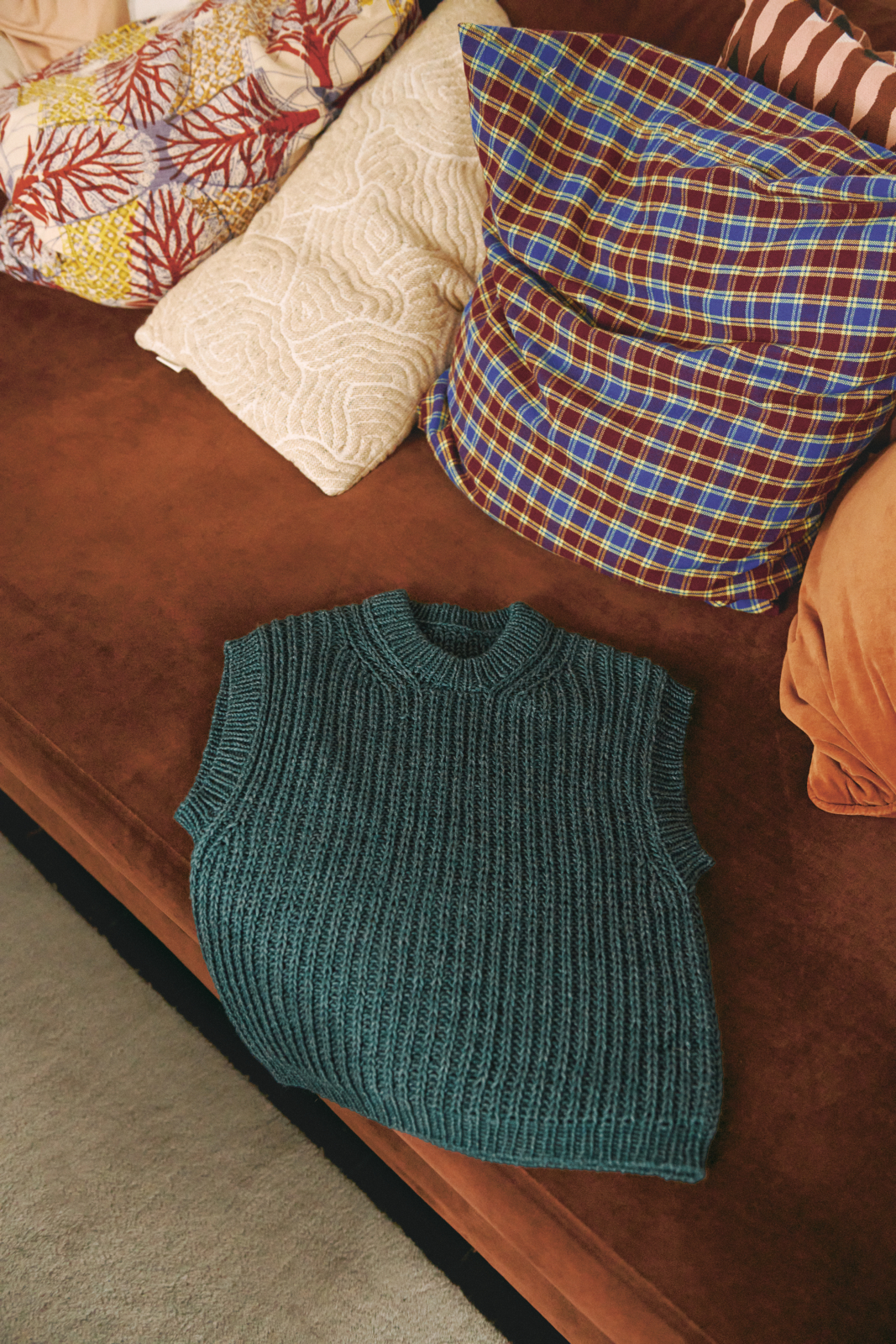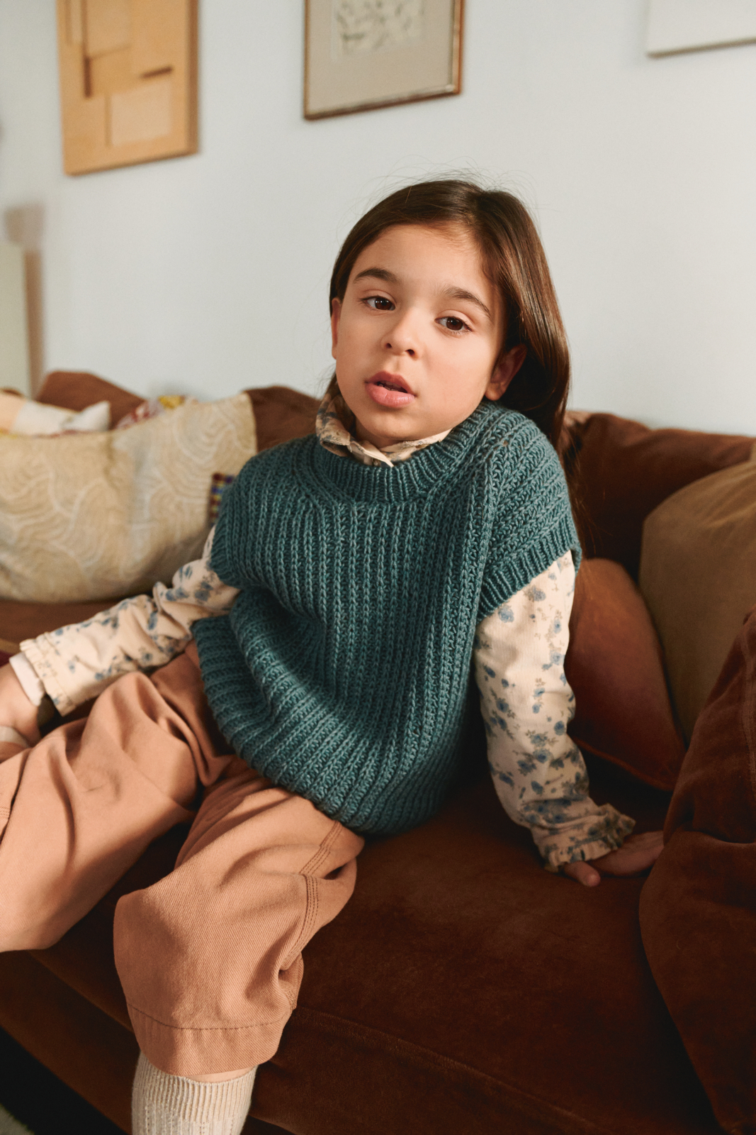 Loui Slipover Junior stickas uppifrån och ner i halvpatent.