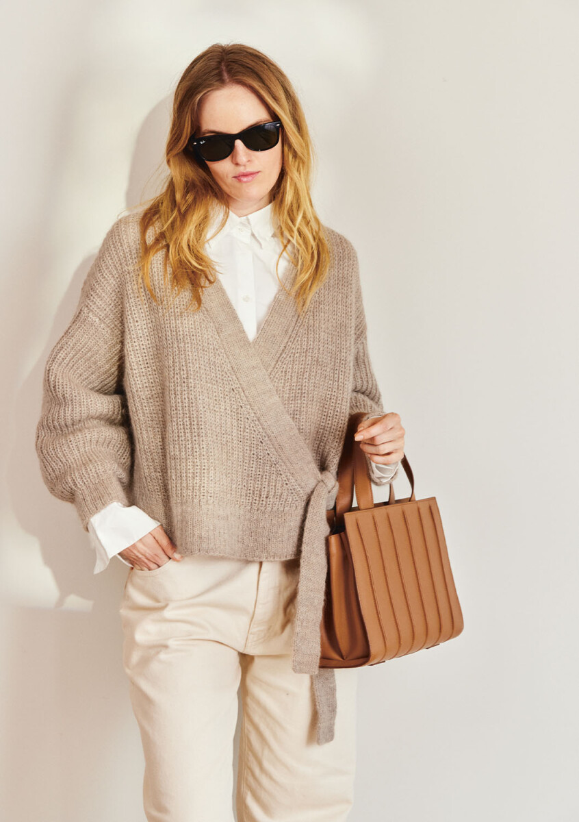 På bild stickad i Tynn Peer Gynt 2650 Gråbeige + Tynn Silk Mohair 3021 Ljus Beige.