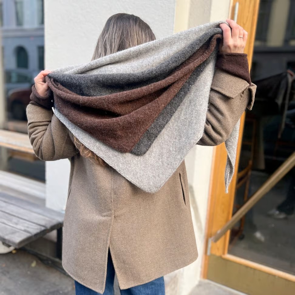 Magdalenasjal är en elegant och enkelt trekantssjal med en dekorativ “hål-låsning”. Sjalen kan stickas i två olika storlekar, liten eller stor, och den stickas i garnet Finull som gör den lätt och luftig samtidigt som den värmer gott.