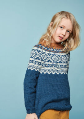 På bild stickad i 1032 Ljusgrå (F1), 2755 Rostbrun (F2) och 2544 Bränd Gulbrun (F3)