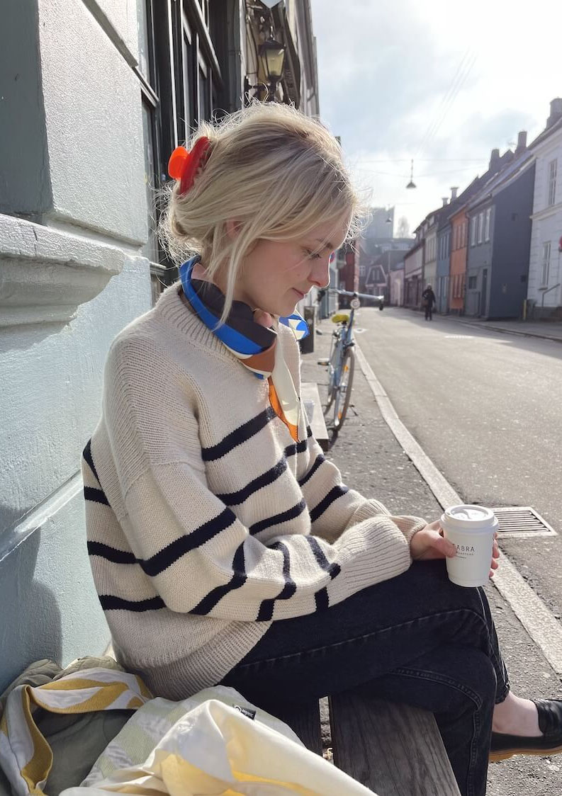 På bild stickad i 2511 Almond (F1) och 5581 Sailor in the Dark (F2)