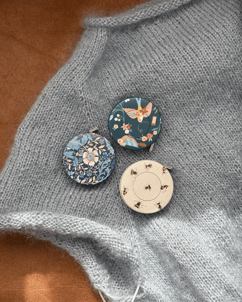 Måttband med rullfunktion, som pryds med ett somrigt mönstrat tryck.