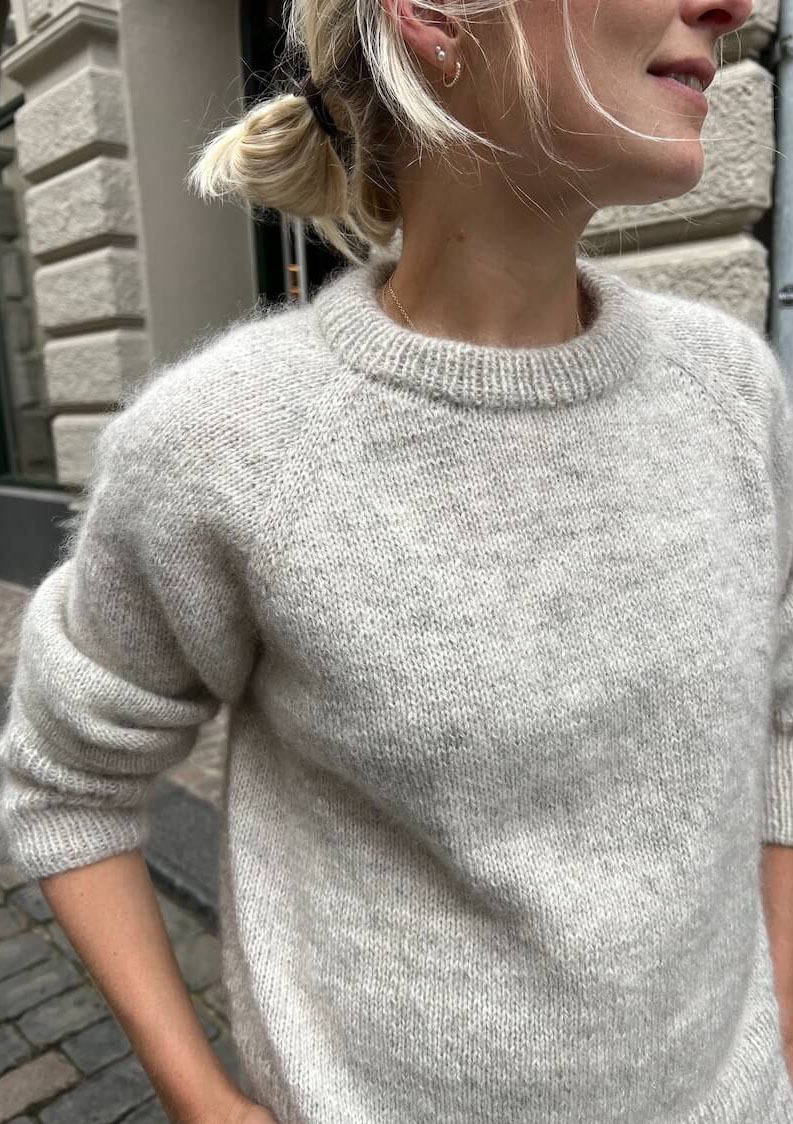 På bild stickad i Tynn Peer Gynt 2641 Naturmelerad + Tynn Silk Mohair 1015 Kitt.