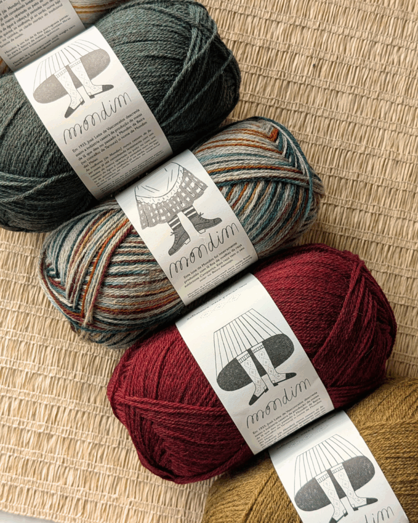Mondim från Retrosaria är ett garn i många vackra nyanser, både enfärgade och flerfärgade. Garnet är i grovleken fingering där nästan all ull kommer exklusivt från fårrasen Campaniça. Mondim kan användas både till plagg och accessoarer, då garnet är slitstarkt passar det utmärkt att sticka sockor av Mondim trots att det är 100% ull, garnet har fått just sitt namn från en by känd för sin småskaliga industri av stickade strumpor.