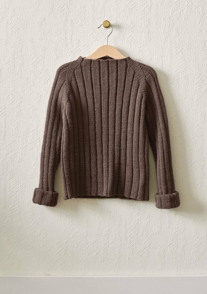Raglantröja i resårstickning, stickad uppifrån och ned