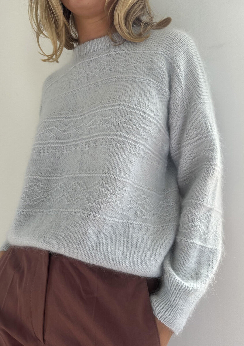 På bild stickad i Sunday 5811 Arctic Ice + Tynn Silk Mohair 5811 Arctic Ice.