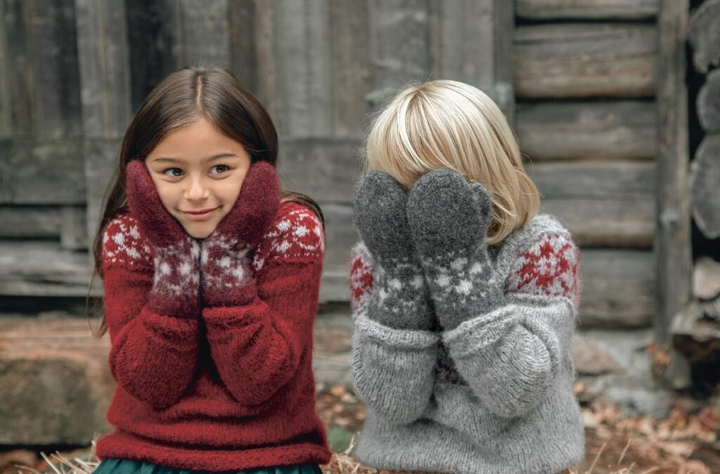 Barntröja med klassiskt Putty-mönster, med runt ok i flerfärgsstickning