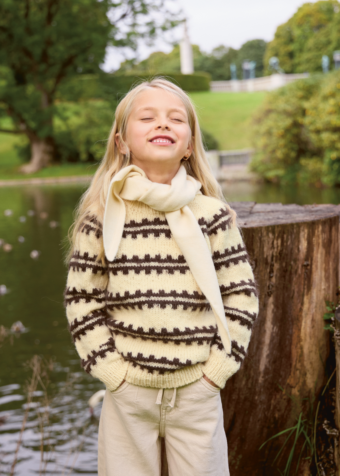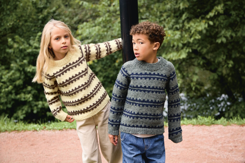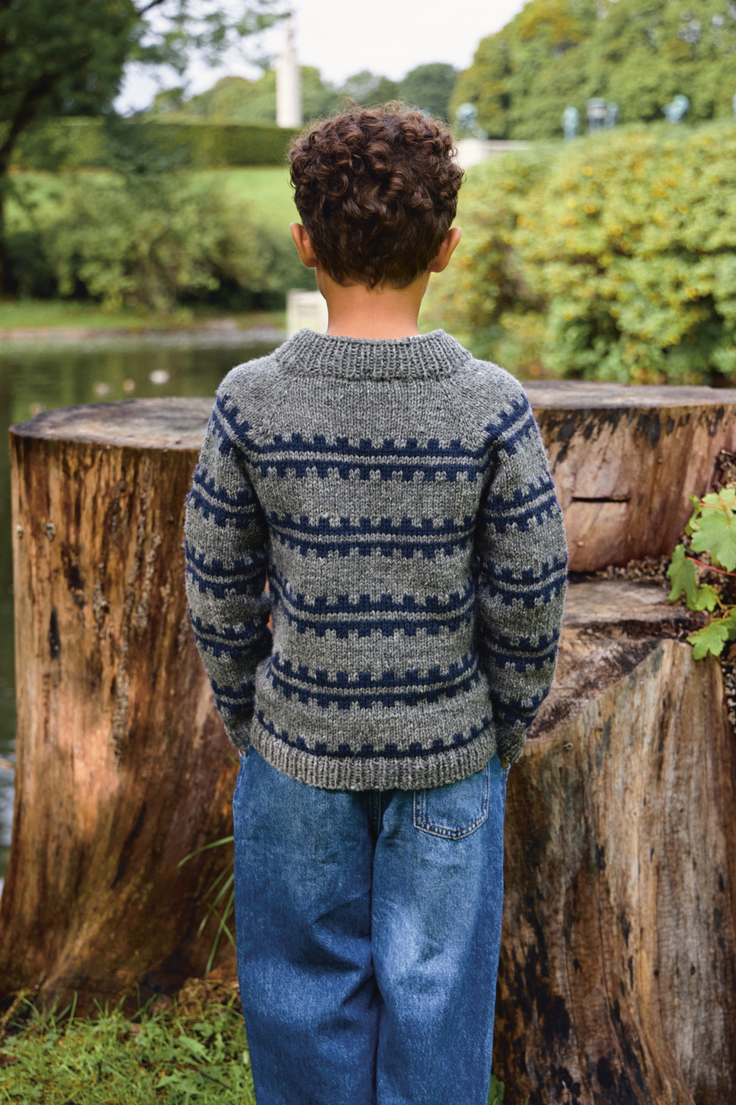 Ridge Sweater Junior stickas uppifrån och ner i Atlas. En lätt och varm barntröja med klassiskt mönster. Mönster till Ridge Sweater i Atlas + Børstet Alpakka (3a) medföljer.