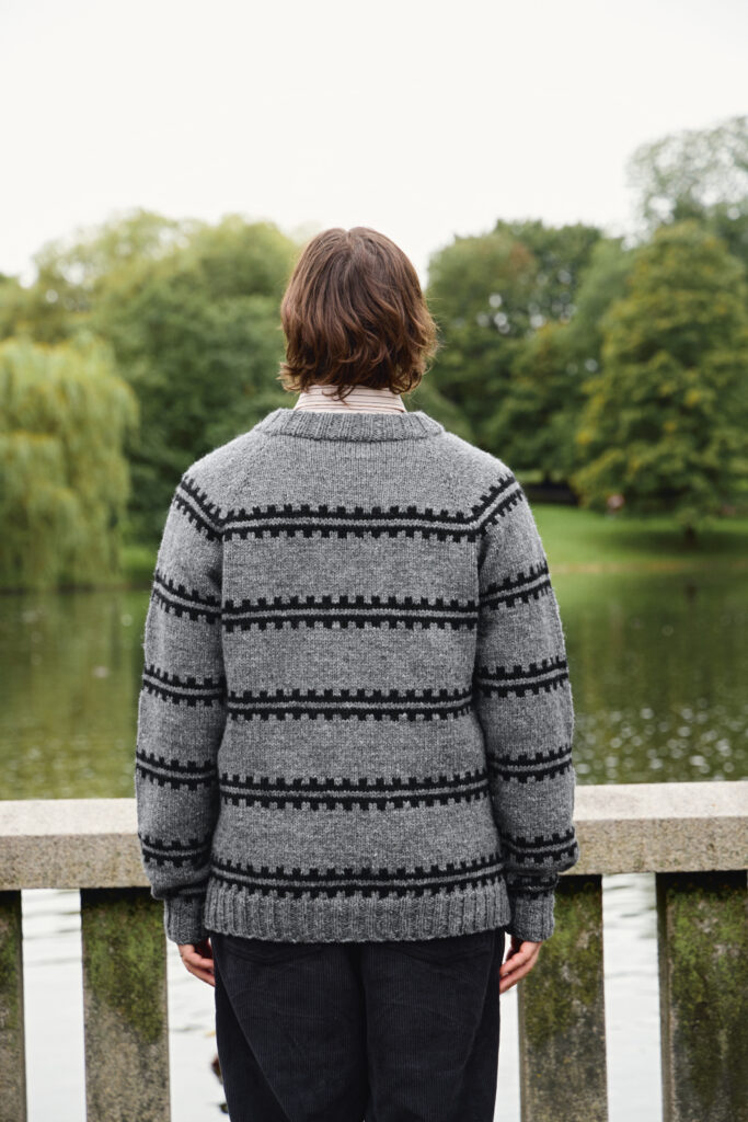 Ridge Sweater Man stickas uppifrån och ner i Atlas. En tidlös tröja med raglan och klassiskt mönster, som ger ett rent och modernt uttryck. Passar lika bra för honom som för henne.