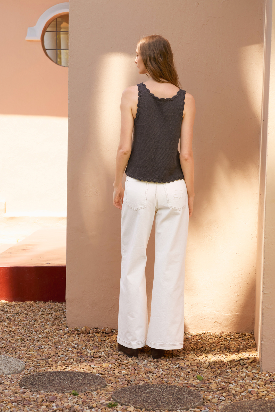 Roselyn Top är en topp som stickas uppifrån och ner i dubbel Tynn Line med A-linjeform och virkad tungkant.